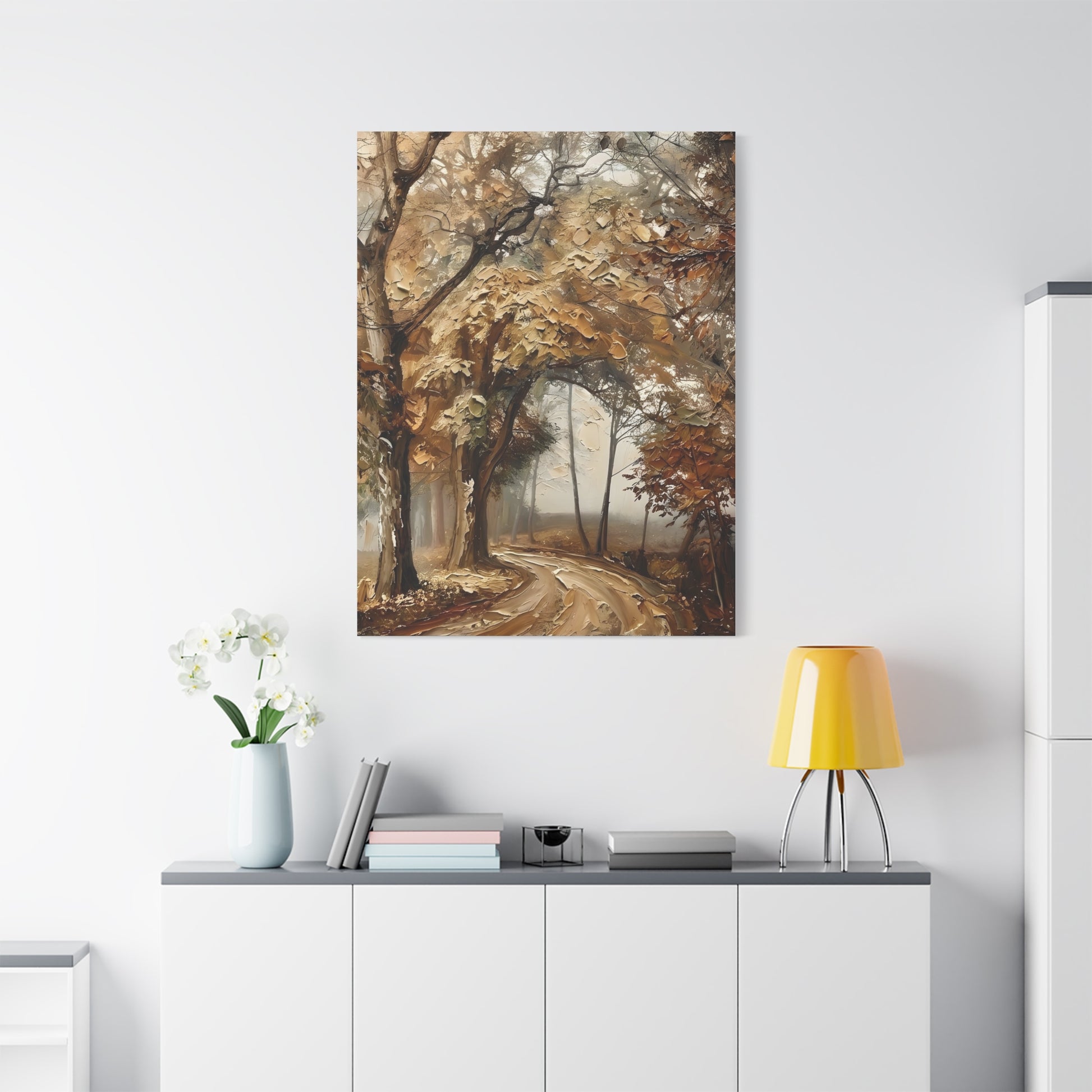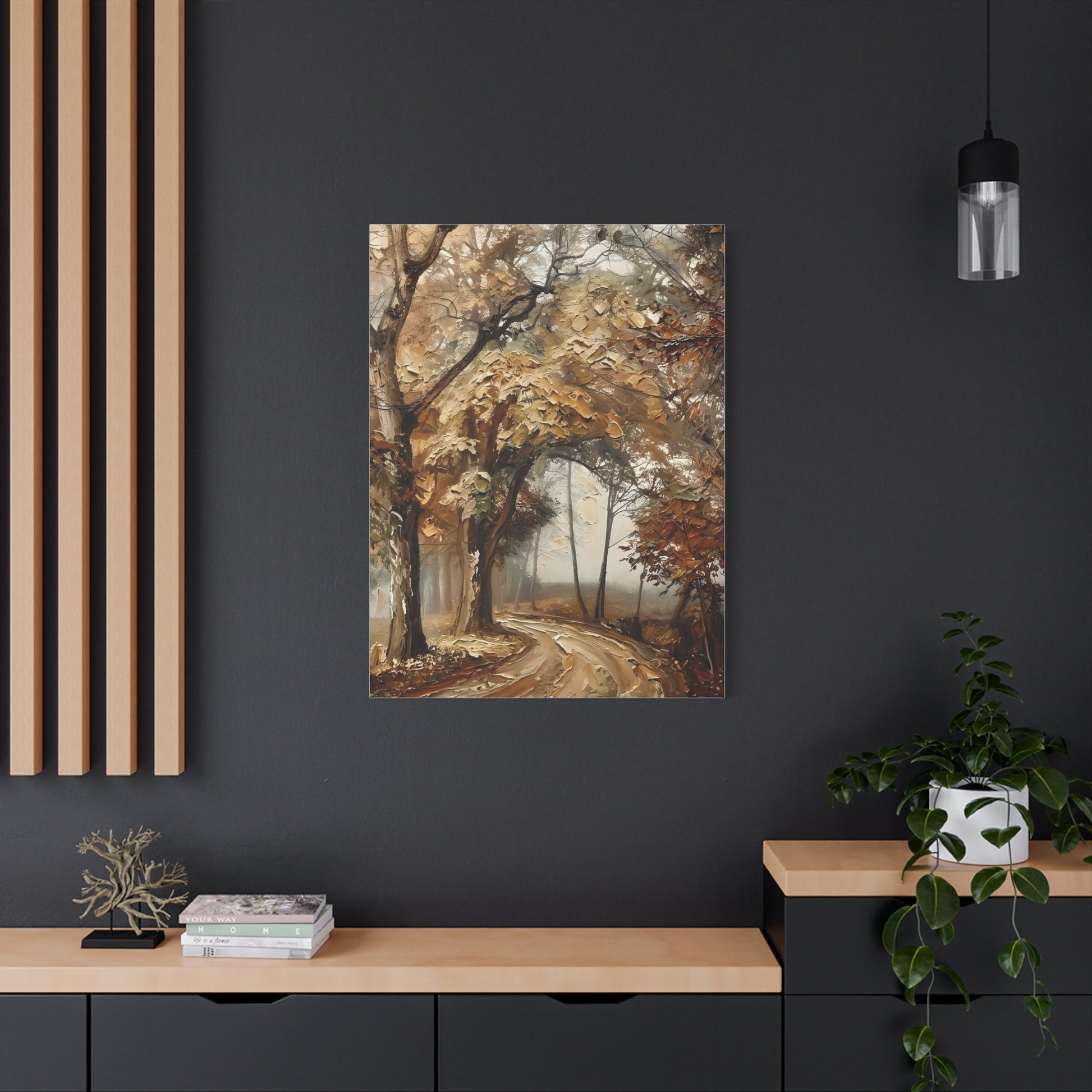 "Misty Woodland Trail" This captivating original acrylic painting depicts a misty woodland trail with extraordinary textural detail. The heavily impastoed brushwork creates a three-dimensional quality, with thick layers of paint bringing the autumn foliage to life in stunning relief.
